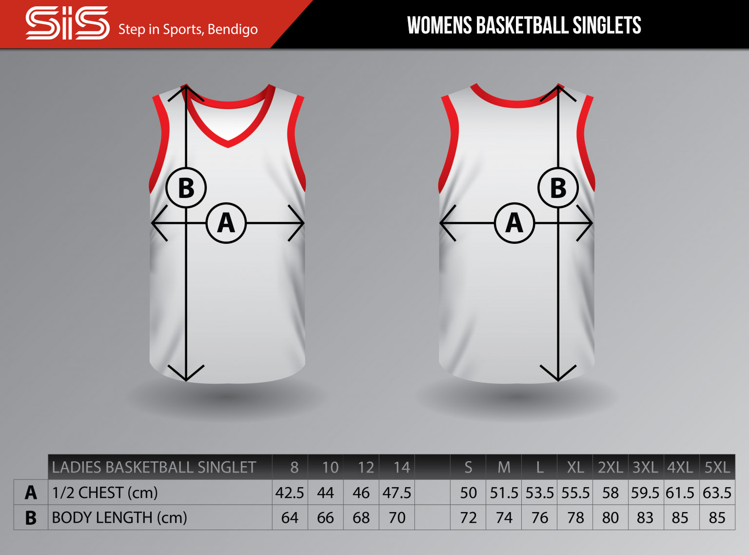We provide a comprehensive Sizing Guide for all our apparel to ensure your team members are fitted correctly. Our sizing charts cover a variety of products, including singlets, t-shirts, polos, and shorts, ensuring your team is comfortable and ready to perform on the field.